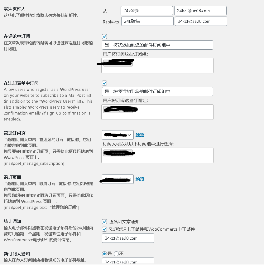 5、设置表单,编辑一个订阅表单,然后把简码放到需要的位置就可以了。当然也可以用小工具添加,也是一样的。