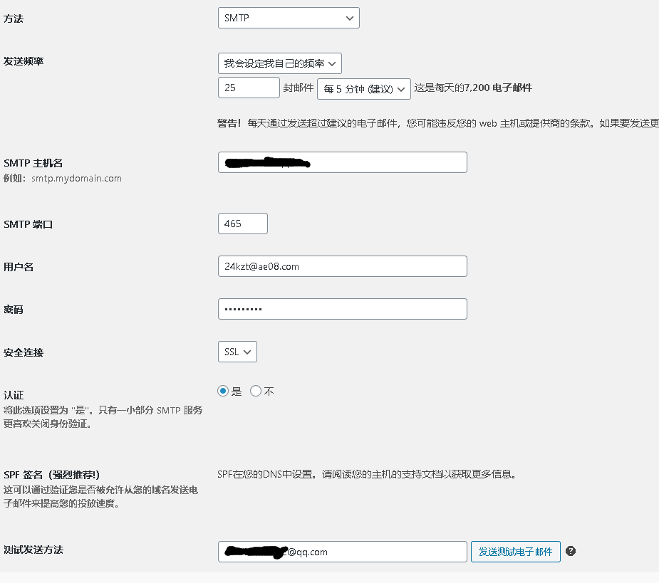 填上smtp主机,端口,用户名,和密码,这些各邮箱都有介绍,直接到你自己邮箱查就可以了,然后发个测试邮件看看成功了吗?如果成功了,基本就可以了。