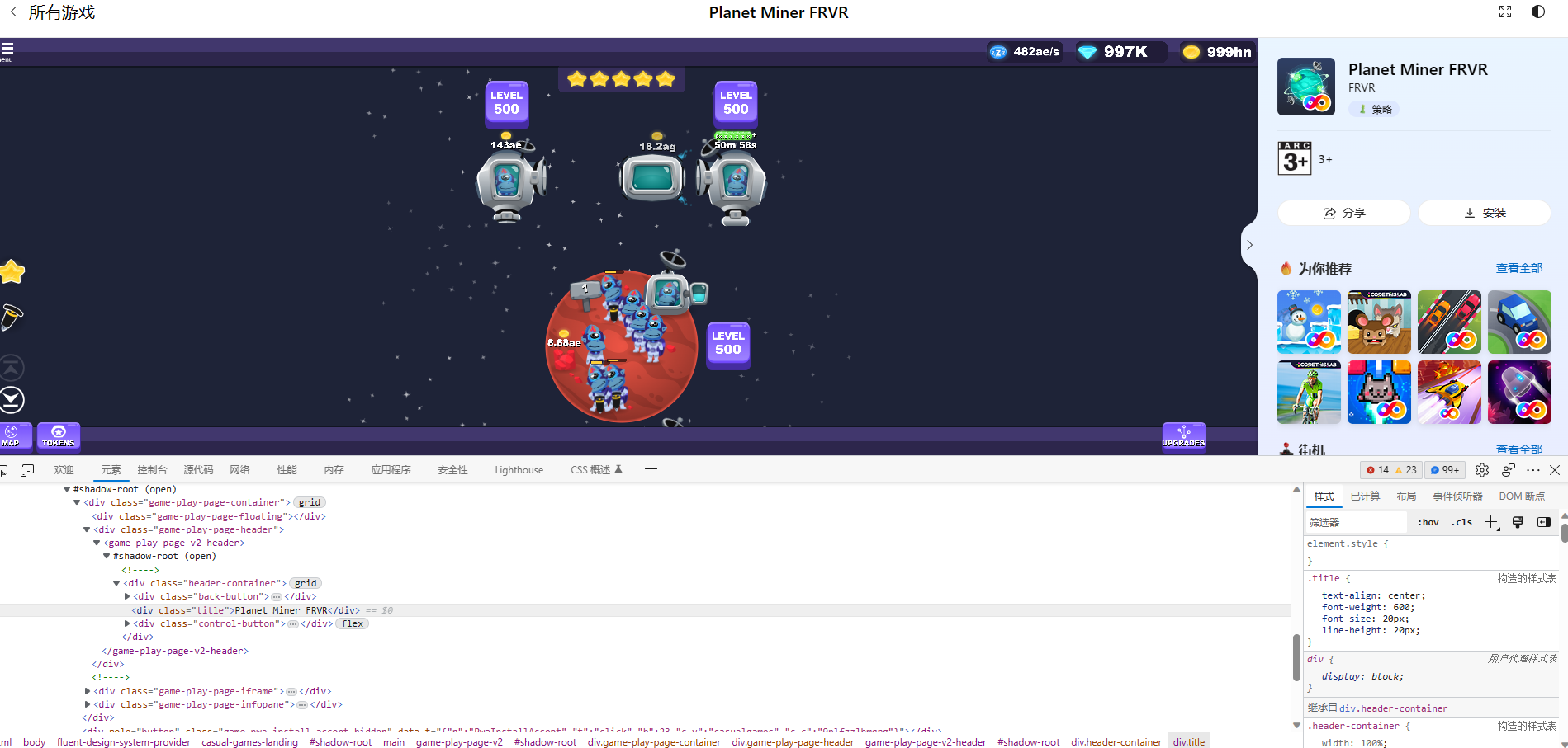 最近玩了个edge浏览器里的小游戏,Planet Miner FRVR,无限星球矿工,一开始玩就上头了,可是到后边就玩不动了然后就动起了歪脑筋。哈哈。。